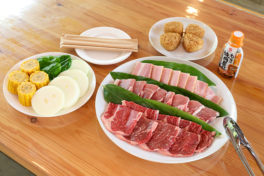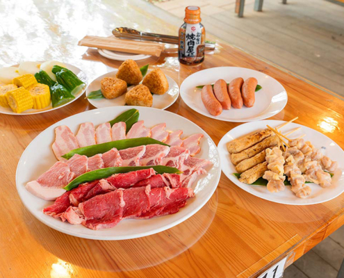 こちらのプランは、オンライン予約に対応した新しいプランです。最少3名様からのご利用になります。お申込みは5日前まで。営業時間・その他は食材持参のバーベキューと同じです。セルフでバーベキューをお楽しみください。(写真は4人前の盛り付け例です)